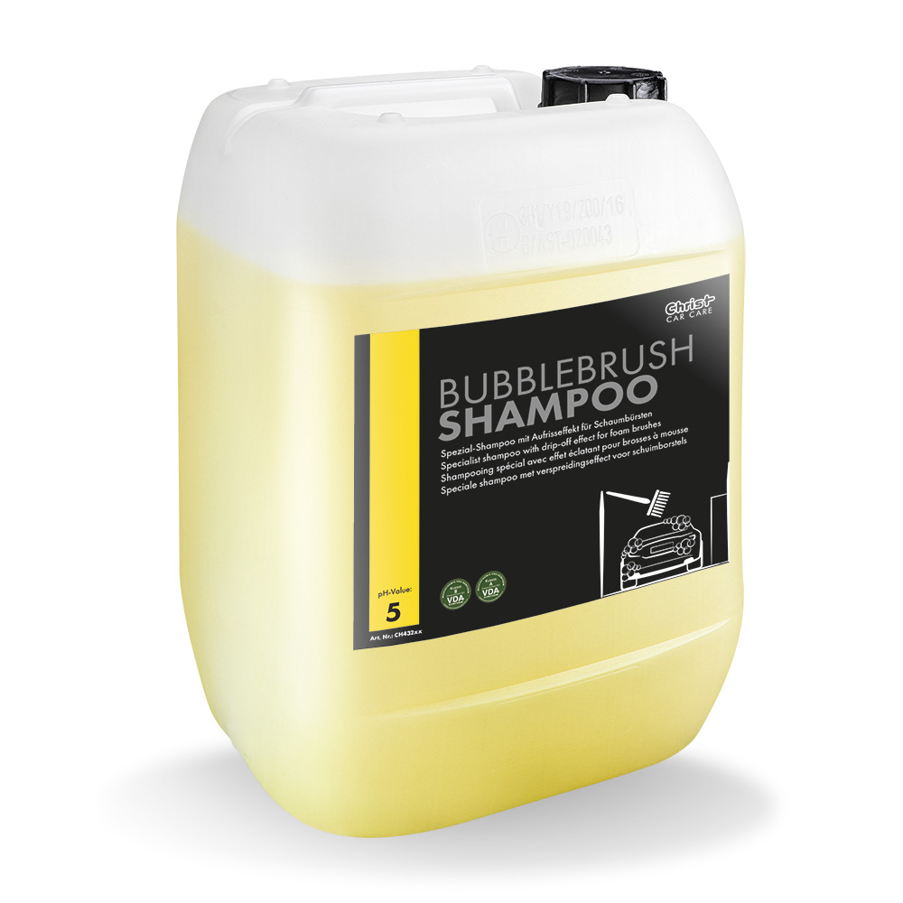 BUBBLEBRUSH SHAMPOO ist ein speziell für die BUBBLEBRUSH Waschbürste entwickeltes Tiefenglanz-Shampoo und wird mit dieser auf dem Fahrzeuglack einmassiert. Es sorgt mit seiner speziellen Lack-Pflege-Formel für eine reinigende und schäumende Tiefenglanz-Behandlung des Fahrzeugs und vereint somit die Arbeitsschritte „Waschen“ und „Polieren“. Seine zusätzlich wasserverdrängende Wirkung beschleunigt die abschließende Fahrzeugtrocknung nach dem Programm „Glanz-Spülen“.